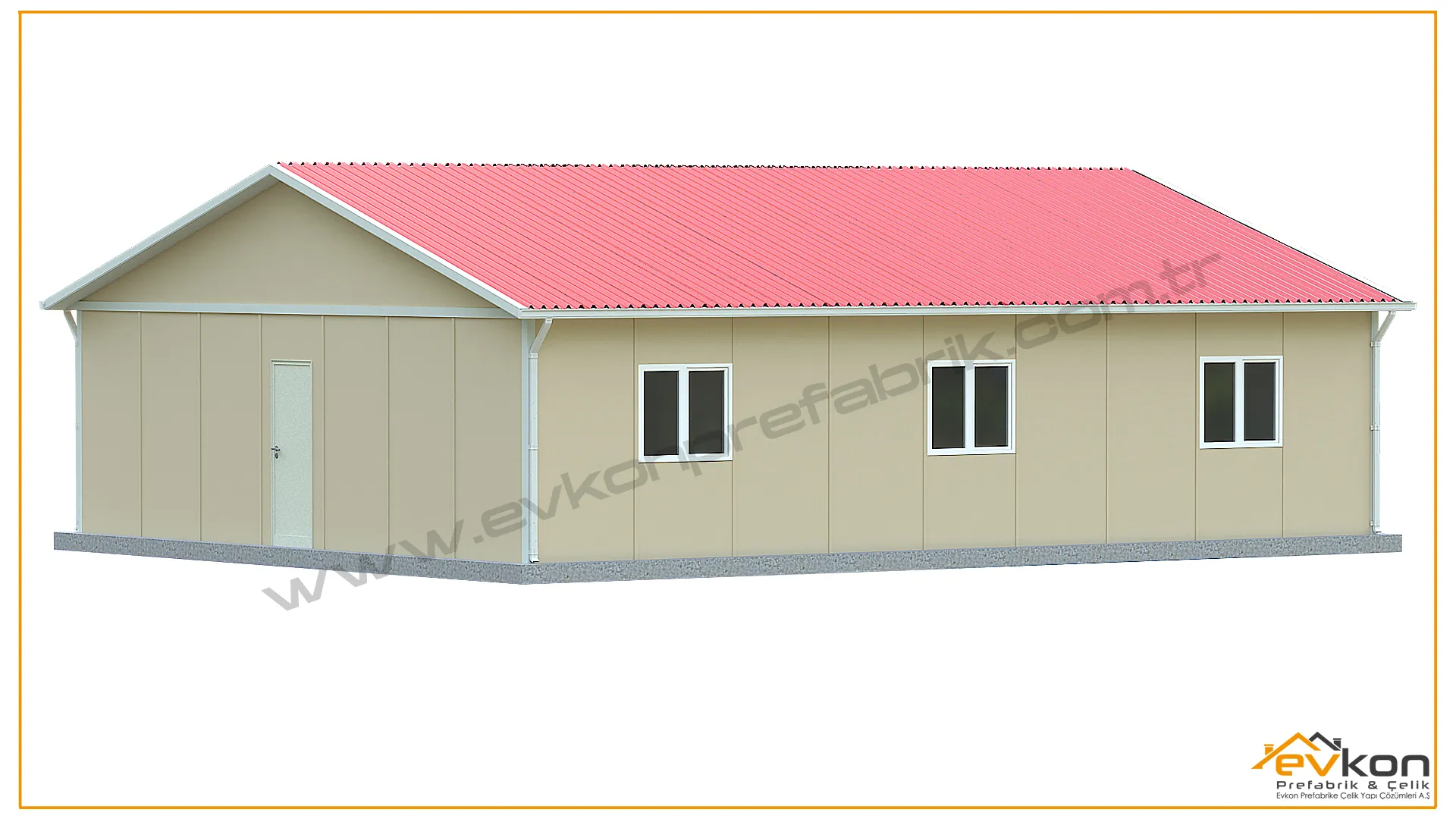 EVKON güvencesiyle üretilen bu yatakhaneler, sağlam yapıları ve temel yalıtım özellikleriyle öne çıkar. Hızlı sevkiyat ve yerinde kolay montaj avantajımızla, barınma ihtiyacına anında çözüm sunarız. Dayanıklı yapısı uzun ömürlü kullanım sağlar.