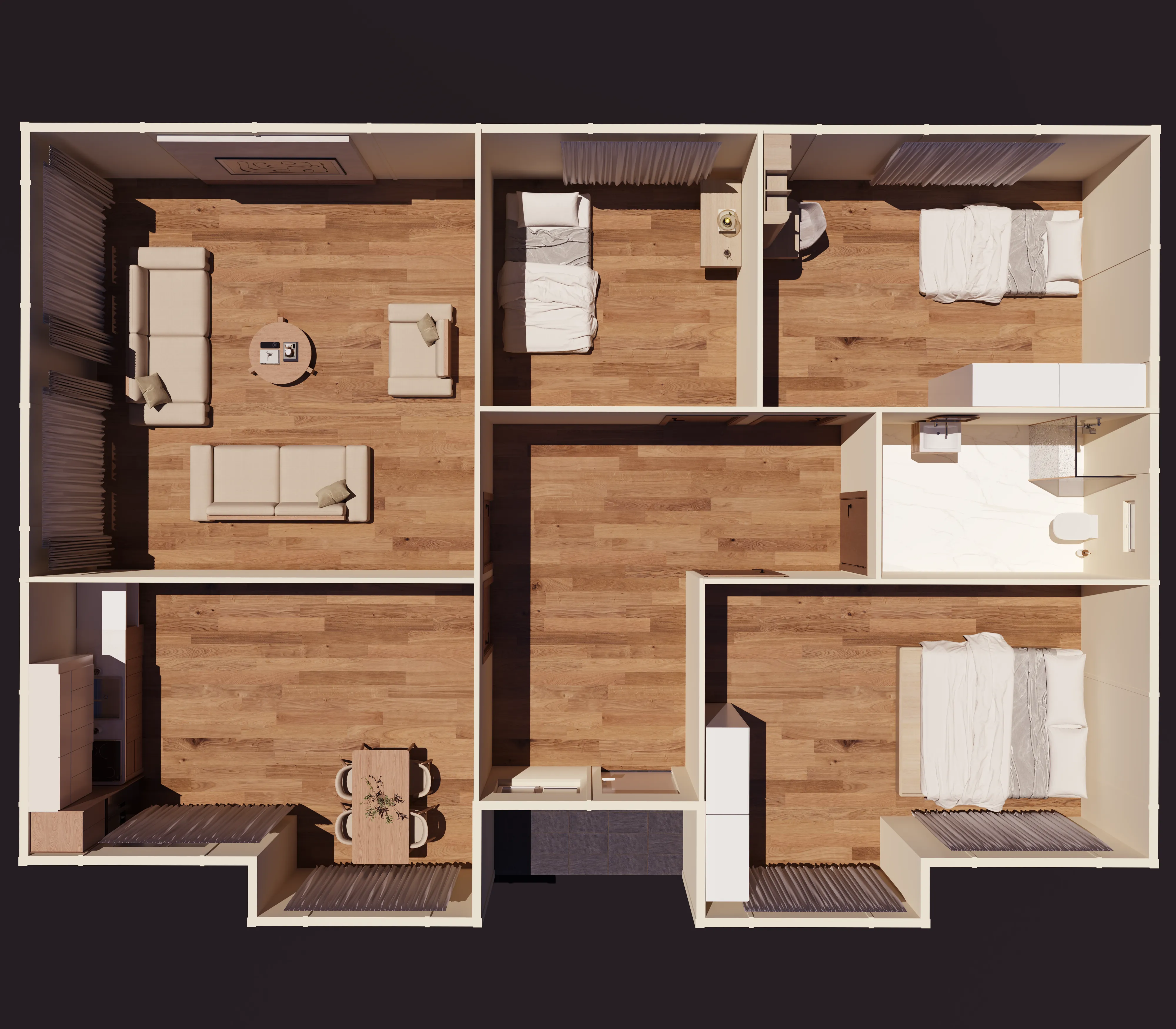 109 metrekare tek katlı prefabrik evler, konfor ve genişliği bir arada arayanlar için idealdir. Fonksiyonel oda düzenlemesi ve geniş iç hacmi ile rahat bir yaşam sunar.