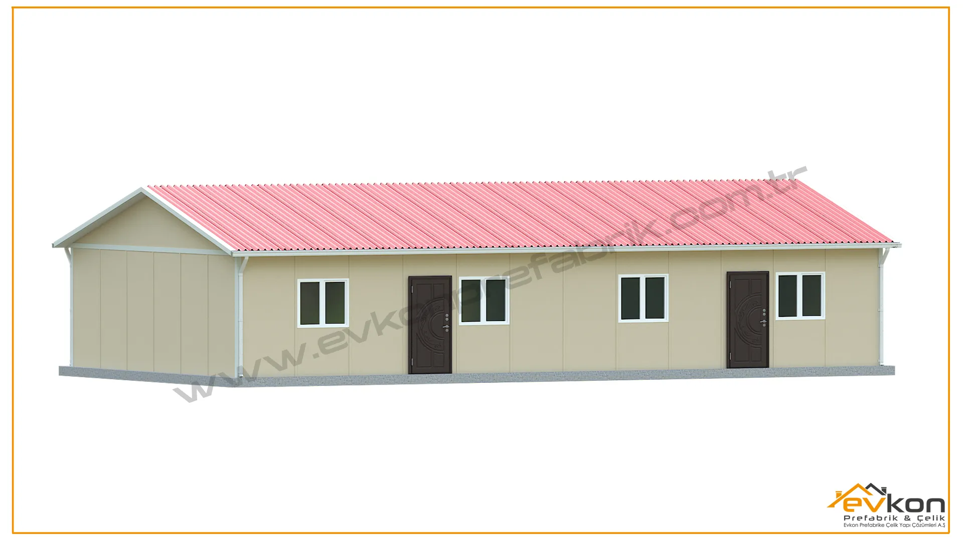 EVKON güvencesiyle üretilen bu konutlar, sağlam yapıları ve yüksek yalıtım özellikleriyle öne çıkar. Zorlu çevre koşullarına ve depreme karşı dayanıklıdır. Hızlı üretim ve yerinde montaj avantajımızla, acil barınma ihtiyacına anında çözüm sunarız.