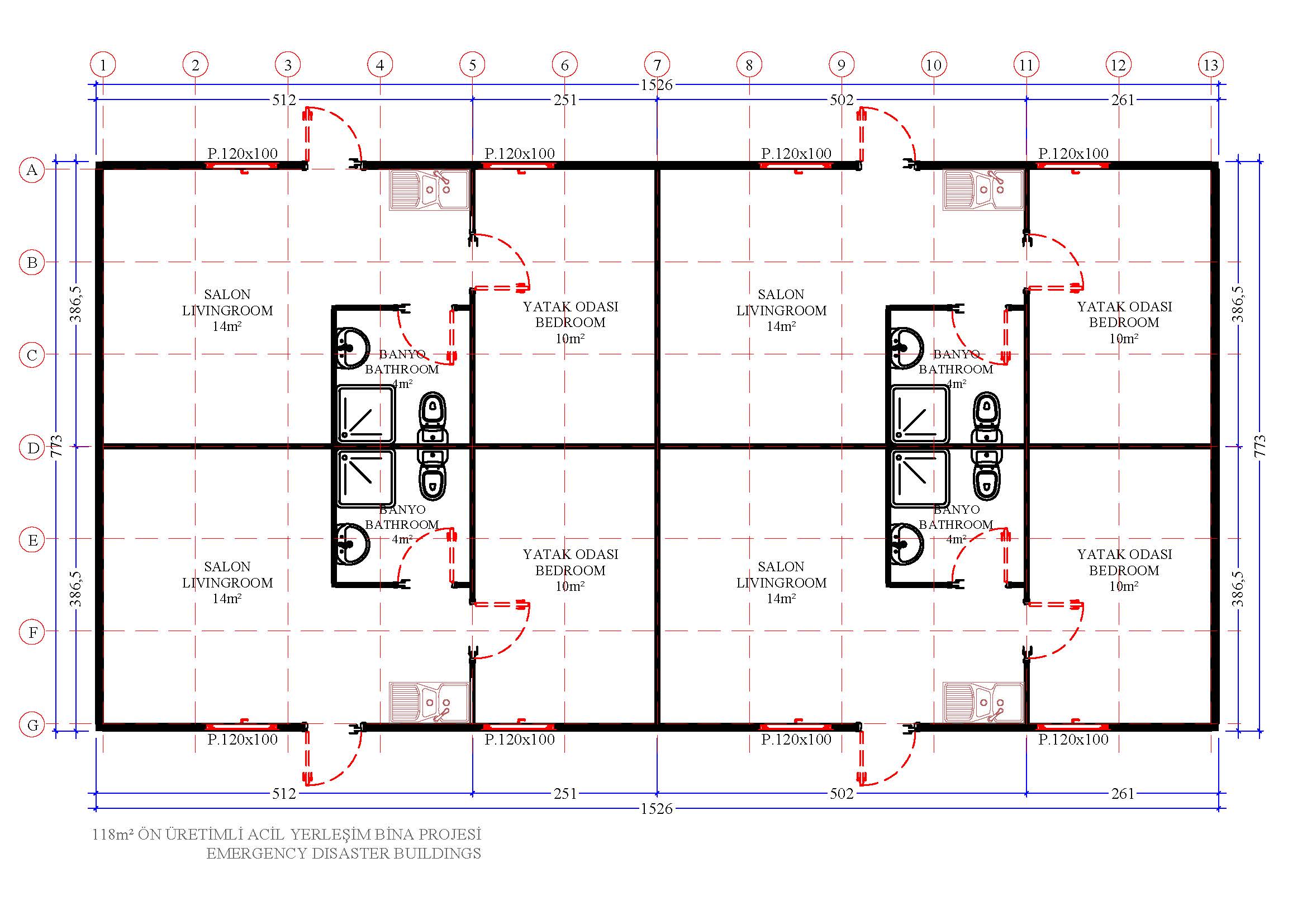 118 metrekare afet konutları, afetzede aileler için hızlı ve güvenli barınma sağlamak amacıyla tasarlanmıştır. Fonksiyonel yaşam alanları sunarak temel ihtiyaçların karşılanmasına yardımcı olur.