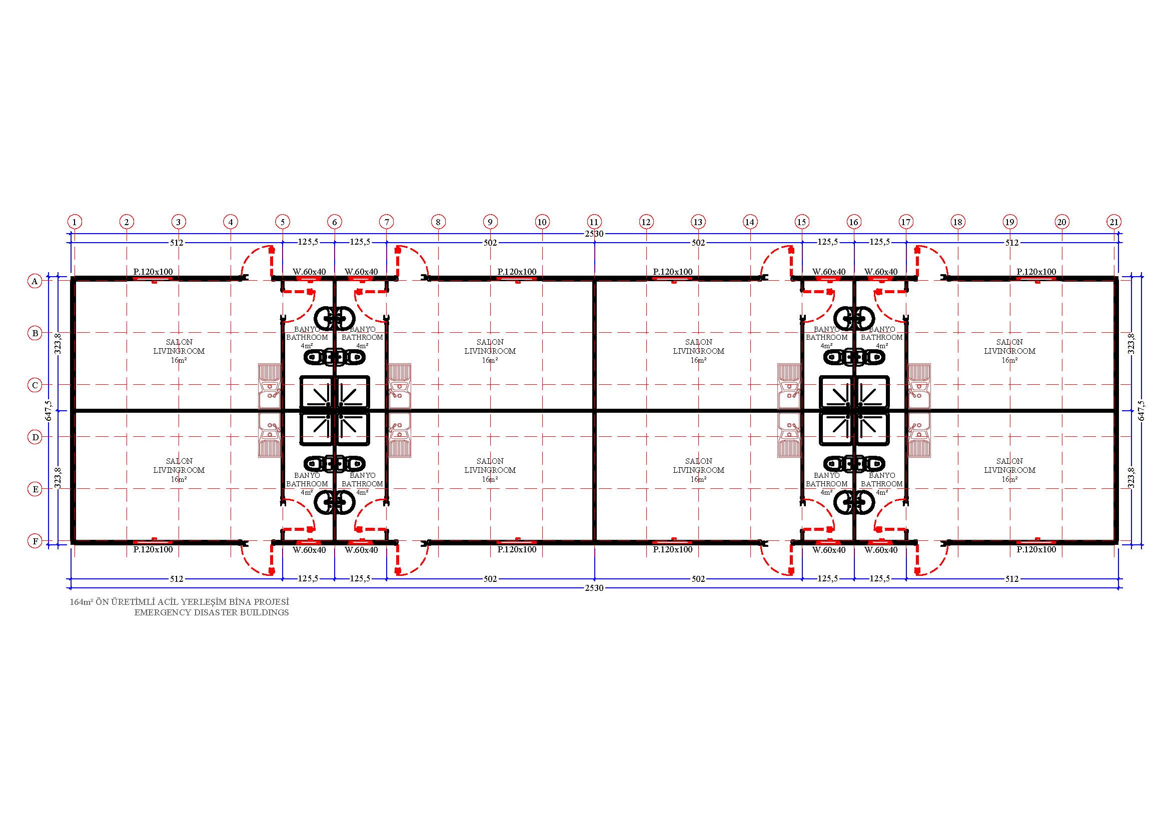 164 metrekare afet konutları, afet sonrası geniş ailelerin veya birden fazla kişinin barınma ihtiyacını karşılamak üzere tasarlanmış hızlı ve güvenli çözümlerdir. Daha fazla yaşam alanı sunarak konforu artırır.