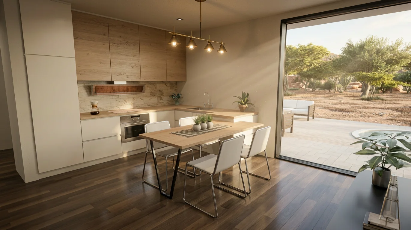 Açık plan oturma + mutfak alanı