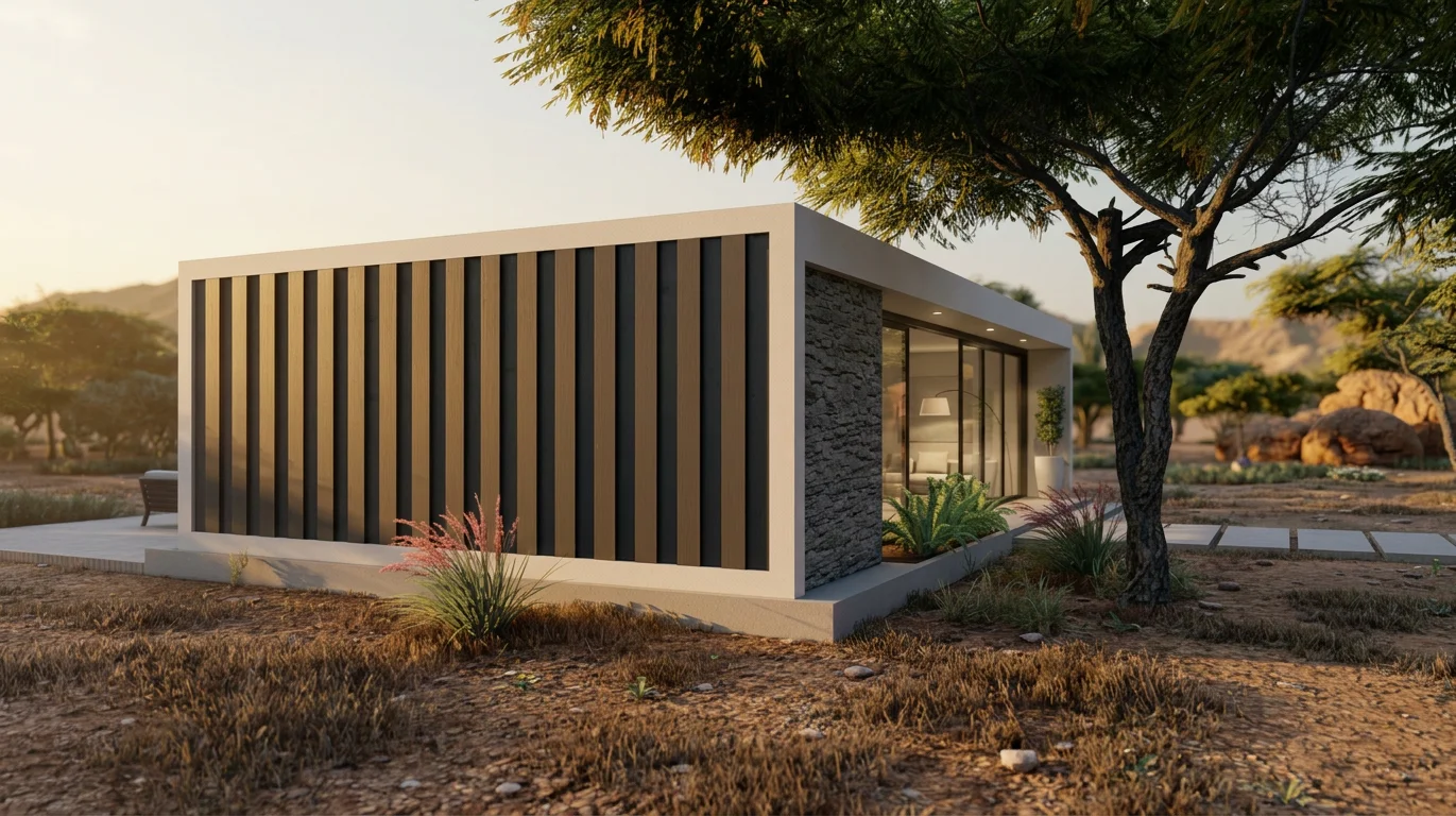 Dış kaplama: 18 mm OSB-3 levha + hava geçirgen rüzgar bariyeri membran + fiber çimento siding